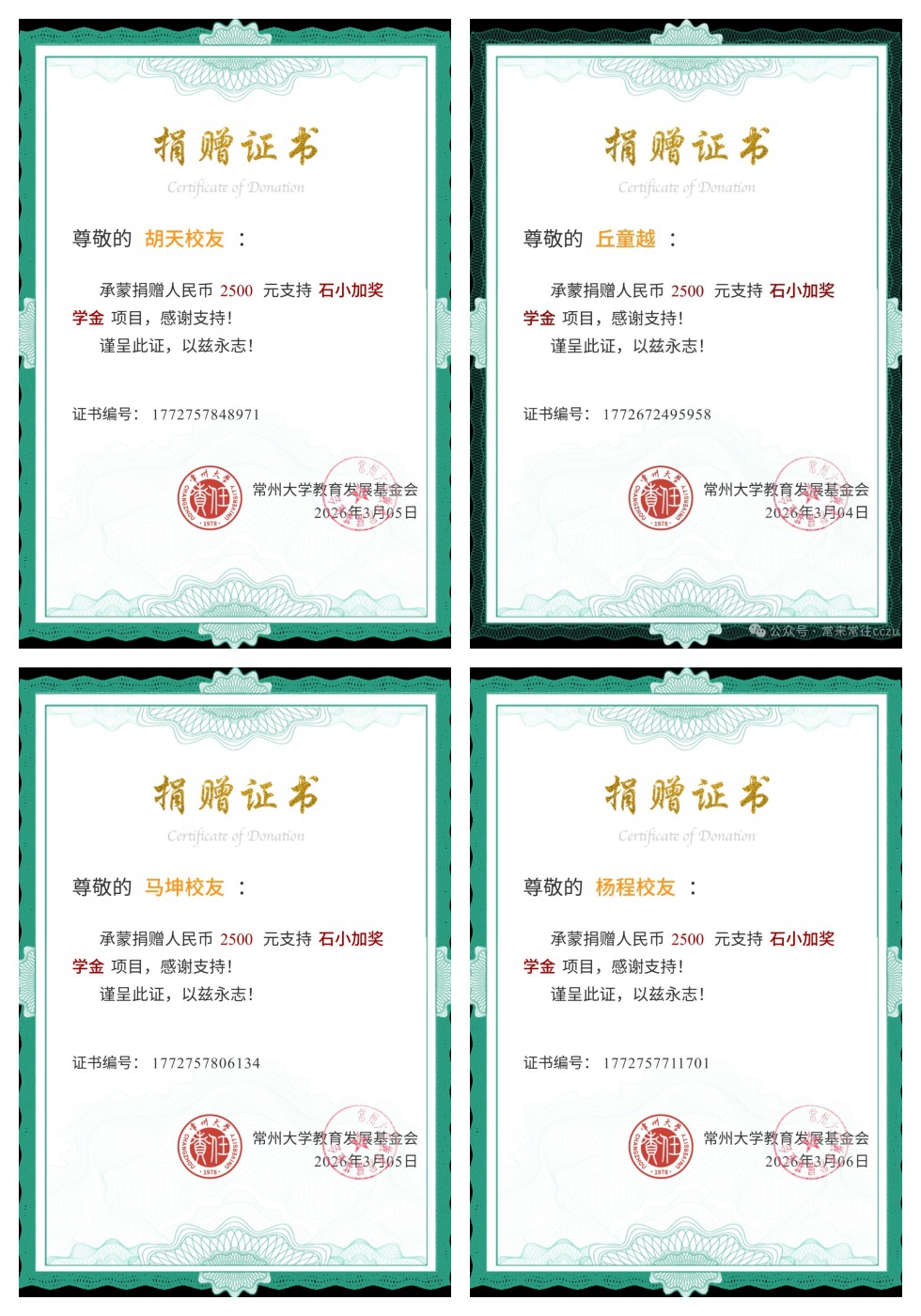 • 以愛(ài)接力:石小加獎(jiǎng)學(xué)金受助學(xué)子畢業(yè)反哺 2026-03-06