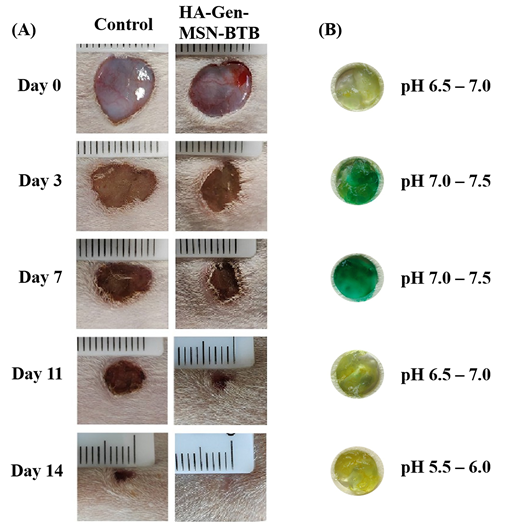 • 在臨床傷口護(hù)理中,實(shí)時(shí)監(jiān)測(cè)創(chuàng)面的愈合進(jìn)程對(duì)評(píng)估愈合狀態(tài)及預(yù)防感染至關(guān)重要。近日,孔泳教授課題組和嘉興大學(xué)、常州中醫(yī)醫(yī)院相關(guān)課題組合作,開(kāi)發(fā)出一種“可示蹤”智能水凝膠用于傷口治療。透明質(zhì)酸和慶大霉素通過(guò)酰胺鍵形成水凝膠,負(fù)載了pH指示劑的介孔二氧化硅通過(guò)靜電作用和氫鍵與水凝膠結(jié)合。水凝膠可通過(guò)酰胺鍵的水解實(shí)現(xiàn)自降解,從而釋放慶大霉素有效抗菌。另外,負(fù)載的pH指示劑顏色會(huì)隨傷口微環(huán)境pH值變化而改變,可實(shí)現(xiàn)可視化監(jiān)測(cè)傷口愈合進(jìn)程,避免了頻繁的采樣、分析過(guò)程。本項(xiàng)工作發(fā)表于A(yíng)nal. Chem. (Anal. Chem. 2026, 98, 1607?1616)。